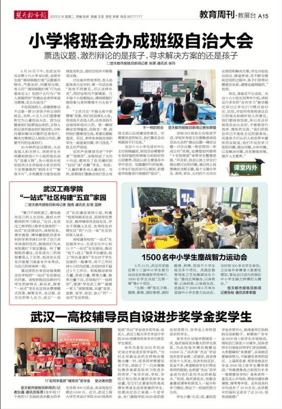 该校建有校级“一站式”社区服务中心、社团文化中心和11个“一站式” 叶区驿站,推动“线下+线上”服务平台建设,线上“校长直通车”平台对干学生反映的一般事项,将于工作时间4小时内回复,办结时间不超过3个工作日。 积极推动领导力量、思政力量、管理力量、服务力量下沉,自觉践行“一线规则”,营造“学在武工商”“温暖一家人”浓郁氛围,共建“宜思、宜教、宜学、宜创、宜心”的“一站式”社区家园。(彭宠 蓝静)