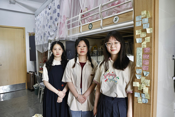 寝室成员合影,从左到右分别是王思思、李雅妮、张颖涵。胡毅摄
