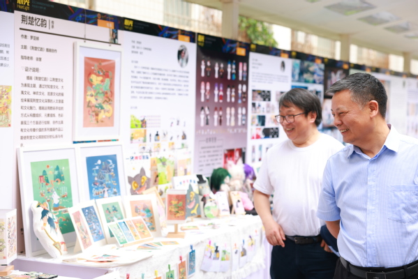 新闻中心讯(记者廖雪韵 杨培)5月18日上午,武汉工商学院艺术与设计学院“心光”毕业设计展在艺术楼中庭隆重开幕。本次毕业设计展一共设置了3个展厅,涵盖了环境设计、视觉传达、产品设计等6个专业共计585名毕业生的优秀作品,作品选题丰富,形式多样,兼具艺术性、原创新、实用性,充分展现了学院学生扎实的艺术功底和较强的创新能力。
