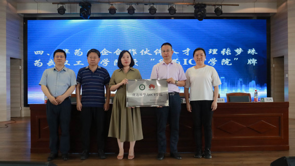 新闻中心讯(特约记者 张兰 记者 余冰燕)5月18日,武汉工商学院人工智能学院“华为ICT学院”授牌仪式在学校学术报告厅举行。学校副校长张俊,华为湖北政企人才经理张梦珠,武汉科云信息技术有限公司总经理邓太勇,学校人工智能学院院长应时、常务副院长胡成松、党总书记吴茜、各系主任及通信工程、物联网工程等专业的学生代表参加仪式。授牌仪式由应时院长主持。