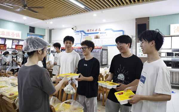 今年是学校建校21周年,学校在5月19日当天中午,为在校1.8万余名师生免费送上了一盒暖心校庆餐,校庆餐分为两种套餐,一种菜品包括红烧狮子头、酥炸鸡排、五彩鸡丁、酸辣土豆丝和咸鸭蛋,另一种菜品包括红烧狮子头、黑椒蒙古牛肉、酥炸鸡柳、黄瓜炒鸡蛋和咸鸭蛋。后续,学校还将为回校参加毕业典礼的应届毕业生发放校庆餐。