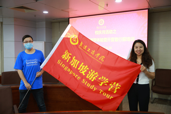 孔少敏部长为新加坡游学体验营授旗,并简要介绍了本次游学活动的基本情况和行前培训会的意义。她介绍,此次游学体验营的主要内容包括五个方面:一是到新加坡知名高校参观交流,比如亚洲排名第一的新加坡国立大学;二是参观新加坡的知名企业,包括华为云新加坡AI实验室、新加坡制造技术研究院的示范工厂等,并将参加新加坡华人跨境创业专题分享会;三是体验新加坡国情,参观新加坡国家博物馆、新加坡城市规划馆等,了解新加坡可持续发展理念,探究其经济迅速发展背后的原因;四是到新加坡著名景点旅游观光;五是参加中英双语专题培训活动,包括新加坡管理大学金融模拟体验课,以及新加坡风险管理协会知名讲师为学生定制的个人风险管理课程等。为了让大家在游学中学有所获,确保游学活动的顺利开展,她提出了四点希望:一是要常怀感恩之心,珍惜此次游学机会;二是要主动大胆交流,做到常思常悟;三是要注意一言一行,自觉维护国家形象;四是要服从团队安排,确保安全往返。