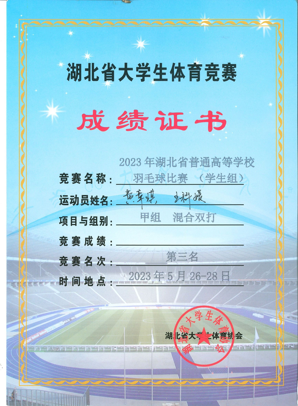 新闻中心讯(通讯员 王承果)5月28日,为期3天的2023年湖北省高校羽毛球比赛在武汉大学落下帷幕,湖北省74支高校代表队,1000多名运动健儿参加了比赛,参赛队伍创历史新高。经过激烈角逐,武汉工商学院羽毛球队队员王科媛、黄章琪获得甲A混双第三名的好成绩。