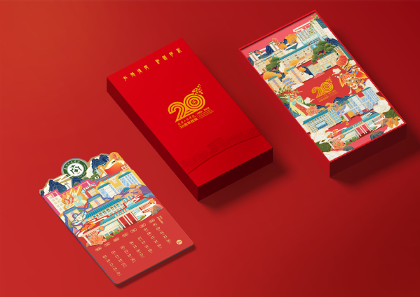 学校20周年校庆台历包括封套、封纸、内页、原木基座、背板、底盒,全彩双面印制,经模切、烫金、UV、对裱、压纹等工艺制作而成,每一页图文精美,创意十足,富有韵味,充满美感。正面构图层次丰富、描摹细微,展现大美校园的标志性楼宇及银杏、莲花等四季风物,同时清晰呈现了传统节气并标注重要节日。背面文字包含农历十二个月的雅称,使其更具中华传统文化的时令色彩,还有武工商特色文化元素以及2022年大型洲际赛事和重要纪念活动节点等。