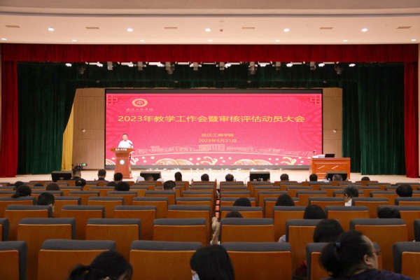 新闻中心讯(记者 余冰燕)5月21日,武汉工商学院2023年度教学工作会议暨审核评估动员大会在学校南门五楼报告厅隆重举行。湖北省教育科学研究院研究员李友玉,学校董事长彭秀春,校长孔建益,党委书记、省政府教育督导专员刘生元等全体校领导出席会议,学校全体教授、副教授、博士教师,各系主任和专业负责人,科级以上人员等参加会议。本次大会以“以审核评估为契机,深化培养高质量应用型本科人才”为主题。大会由副校长张俊主持。