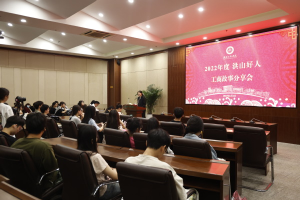 新闻中心讯(记者 高涵)讲述工商故事,传播工商正能量。6月1日下午,武汉工商学院2022年度“洪山好人”事迹分享会在图书馆一楼会议室举行,获评“创业创新好人”的广告学专业2017级学生李义凡、新闻学专业2019级学生罗保浩、电子商务专业2020级学生赵志雪以及获评“助人为乐好人”的电子商务专业2020级学生李雪与同学们分享他们的“工商故事”。