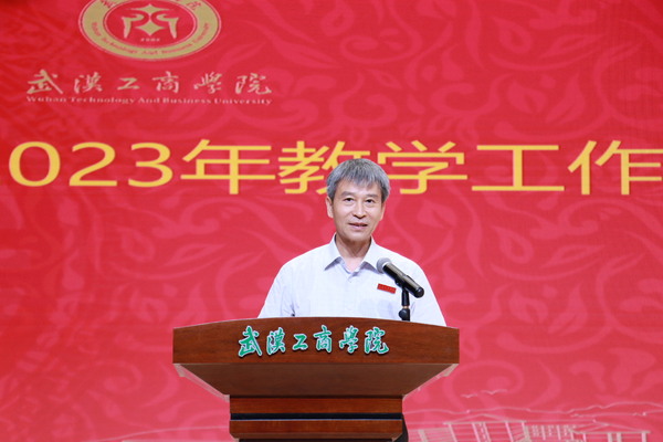 新闻中心讯(记者 余冰燕)5月21日,武汉工商学院2023年度教学工作会议暨审核评估动员大会在学校南门五楼报告厅隆重举行。湖北省教育科学研究院研究员李友玉,学校董事长彭秀春,校长孔建益,党委书记、省政府教育督导专员刘生元等全体校领导出席会议,学校全体教授、副教授、博士教师,各系主任和专业负责人,科级以上人员等参加会议。本次大会以“以审核评估为契机,深化培养高质量应用型本科人才”为主题。大会由副校长张俊主持。
