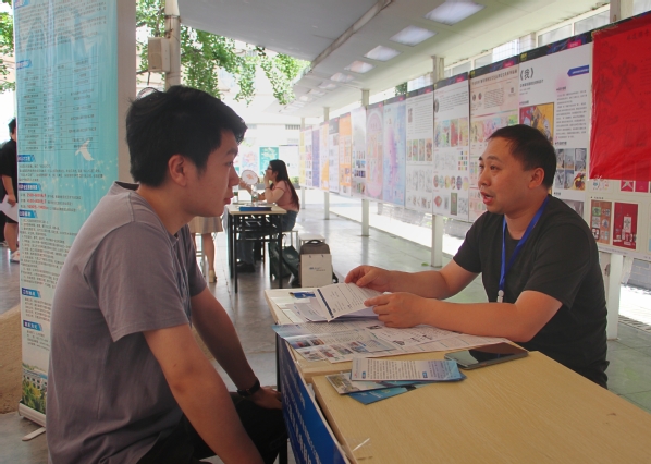 图为学生吴锦华向企业了解情况 摄影:张婉静