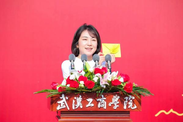 “我代表学校,向风华正茂的你们,送上热烈的祝贺和美好的祝福。与同学们相处的岁月里,最让我感动的是公布手机号以来,我深切地感受到了我们每一位同学是那么热爱学校,热切地盼望着学校能够一点一滴地改进,能够不断地走向新的辉煌”,毕业典礼上,孔建益校长满怀深情地致辞道。他感慨地说,“你们的成长也伴随着学校的快速发展,在你们的积极建议和参与下,学校迈上了高质量发展的新阶段,实现了国家级一流本科专业、国家级一流本科课程建设水平位居全省同类高校第一的好成绩,雄踞校友会2023中国工商类民办大学排名榜首的重大突破。”他说,自公布手机号以来,他收到了大概2万条同学们的短信,全部给予了回复,虽然回复起来很累,但是很值得,因为通过短信交流能够和同学们心连心,共同发现学校的不足,共同推动学校的发展,“这是我作为校长,感到特别高兴、特别自豪的时刻,谢谢大家对我的信任!”由于当天天气较热,孔校长还幽默地说,“大家今天也更加深刻地体会到了,武汉,就是要‘捂一身汗’,在毕业典礼的时刻,这骄阳似火代表了武汉的热情,武汉工商学院的热情,代表了我们大家舍不得你,通过今天的这一身汗,让你终生记得,在武汉工商学院有你奋斗的青春,有你捂过得无数身汗!”对于即将离开学校的毕业生,孔校长满怀不舍地勉励大家:与新时代共进,做理想坚定的追梦者;与优秀者同行,做勇于创新的开拓者;与好习惯相伴,做脚踏实地的奋斗者。