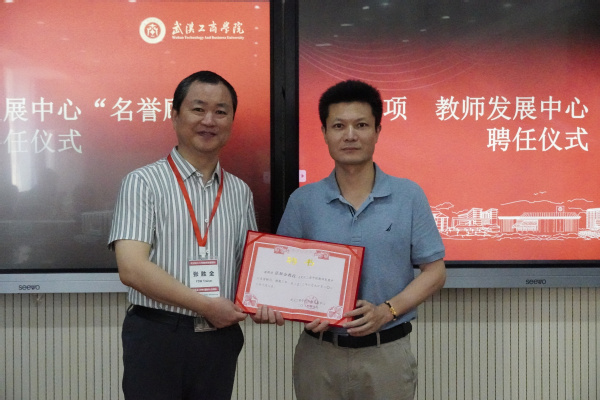 在工作坊培训正式开始前,武汉工商学院人力资源部部长邢赛鹏向张胜全教授颁发聘书,代表学校聘请他担任武汉工商教师发展中心“名誉顾问”。