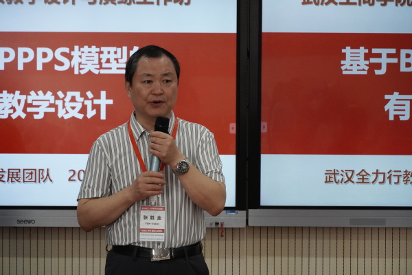 新闻中心讯(特约记者 万梦兰)6月9-11日,武汉工商学院人力资源部(教师发展中心)特邀武汉轻工大学教师发展中心团队来校开展为期3天的“BOPPPS有效教学设计与演练工作坊”,原武汉轻工大学教师发展中心主任张胜全教授担任主讲专家,覃晶晶、陈劲、刘江蓉3位副教授担任培训引导师。该团队培训经验丰富,近8年来为200多所高校举办中青年教师教学能力培训200余场,深受好评。各学院36名教师参加了此次工作坊活动,人力资源部副部长陈敏主持本次工作坊。