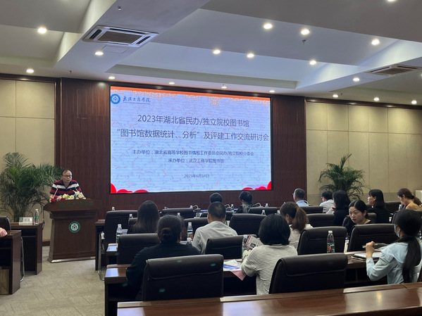 新闻中心讯(特约记者 郑安安 徐钰钦)6月14日上午,为加强湖北省民办/独立院校图书馆之间的合作交流,推进湖北省民办/独立院校图书馆高质量发展,更好地服务高校的教科研工作及审核评估、合格评估工作,由湖北省高等学校图书情报工作委员会民办/独立分委会主办,武汉工商学院图书馆承办的2023年湖北省民办/独立院校图书馆‘图书馆数据统计、分析’及评建工作交流研讨会在武汉工商学院第四会议室召开。