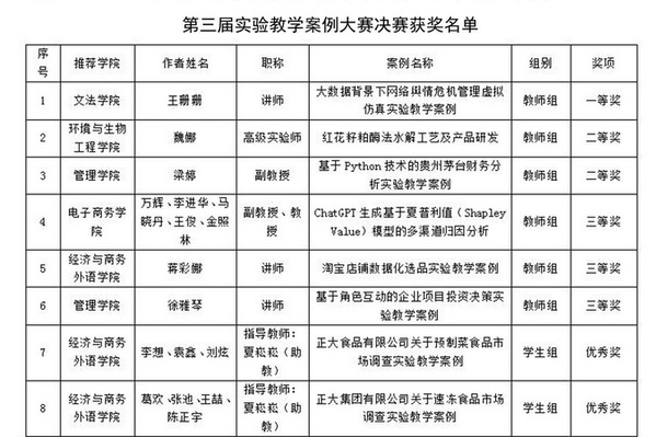 图为第三届实验教学案例大赛决赛获奖名单