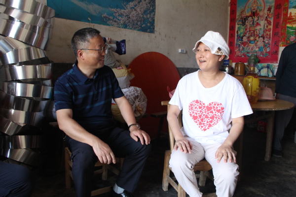 在张明霞家中,左宗文与她及其父母促膝谈心,亲切询问了她的身体状况、家庭情况及当前面临的主要困难,送上了端午节的慰问品,并转达了学校领导、同事们的关心和问候。