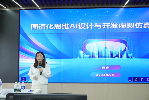 讲座分为两个主题。首先,来自电子商务学院的李进华教授以《ChatGPT赋能教学与科研之路径探析》为主题,深入浅出地讲述了ChatGPT的发展历程、原理以及核心技术。同时也结合自身多年教学教研经验,同现场师生一起探讨了在教育数字化转型中实现信息技术与教育教学、科研深度融合的实践路径。随后,北京鑫锐诚毅数字科技有限公司总经理曲睿为大家带来题为《图谱化思维AI设计与开发虚拟仿真一流课程资源》的报告。他向大家阐述了掌握虚拟仿真SaaS云端应用设计以及开发虚拟现实教育应用资源的方法,即制定信息化、智能化方案。