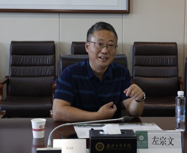 新闻中心讯(记者 周逸文)6月27日14:30,中国涉外教育集团主席康正、广东涉外教育投资有限公司总经理吴双、深圳市深职训学院院长魏仁发一行来武汉工商学院交流调研。武汉工商学院副校长左宗文、董事会办公室主任邱微鹏、国际合作交流部部长孔少敏、社会合作与发展部部长尹贝等参加交流。双方围绕校企合作、国际化教育等议题展开交流座谈,座谈会在学校综合楼1220会议室召开,由左宗文副校长主持。