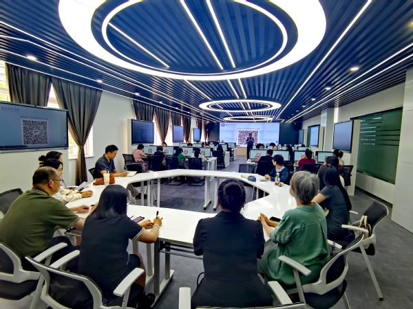新闻中心讯(记者 曹子建 李萱)6月29日下午,武汉工商学院虚拟仿真实验教学一流课程虚拟教研室在实验楼计算广告实验室举办第二期“教育信息化智能化讲座”暨教学示范公开课研讨活动。来自学校教务部、教师发展中心、教学质量监测与评估中心、实验教学中心的主要负责人和管理学院、电子商务学院、物流学院等8个学院的50余位教师参加活动。活动由实验教学中心副主任毛志山主持。