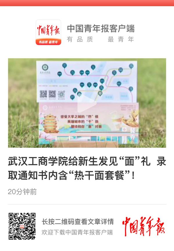 7月24日下午,武汉工商学院校长孔建益亲笔签发了以编号“20230001”为代表的首批2023年新生录取通知书。伴随新生录取通知书的还有一份专属于2023级新生的见“面”礼——武汉特色美食“热干面套餐”餐券。