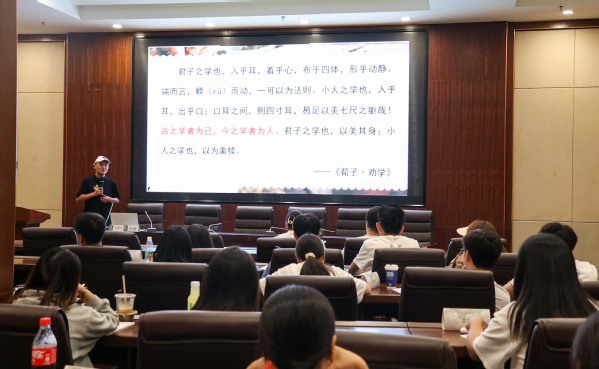 新闻中心讯(记者 蓝静 芮雨欣)“希望同学们在这里能学有所获,学有所成,做到与圣贤为友,与经典同行”,8月31日上午,青年学者、国学讲师、传统文化推广者、湖北省国学研究会副秘书长、武汉工商学院国学教育研究院兼职教师张凤篪与第八届国学夏令营的学员们分享国学经典中的做人道理和处事哲学。