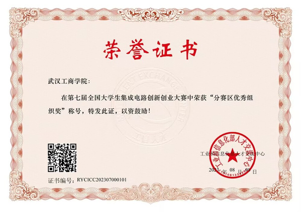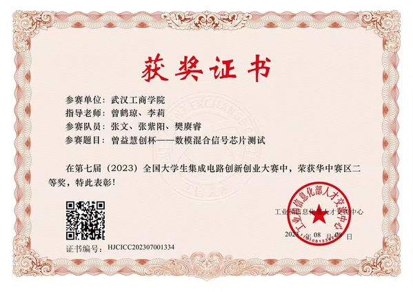新闻中心讯(记者 樊赓睿)7月20日,由工业和信息化部人才交流中心主办的第七届全国大学生集成电路创新创业大赛华中分赛区决赛在合肥圆满落幕。经过决赛的激烈角逐,武汉工商学院人工智能学院微电子科学与工程专业学生代表队荣获二等奖1项,三等奖3项,学校荣获“分赛区优秀组织奖”称号。