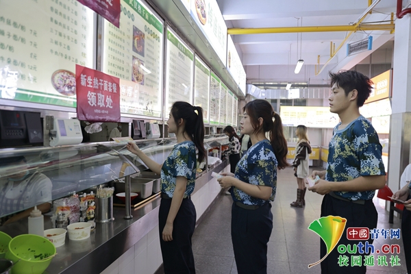 中国青年网武汉9月19日电(通讯员 芮雨欣 杨小婷)“第一次吃武汉热干面,太香了!谢谢学校送给我们的见‘面’礼!”9月13日中午,来自黑龙江的武汉工商学院艺术与设计学院大一新生毕博雅在学校食堂一边品尝热干面,一边竖起了大拇指。