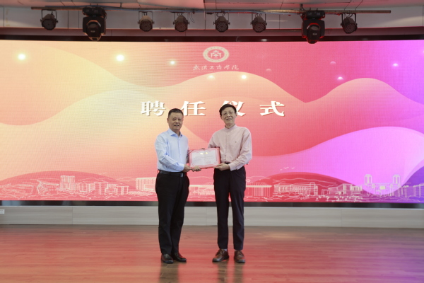 随后,大会举行了聘任郑用琏教授为武汉工商学院客座教授的仪式,刘生元书记为郑用琏教授颁发聘书。