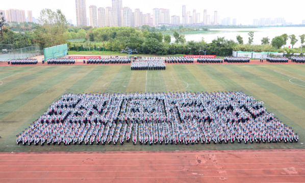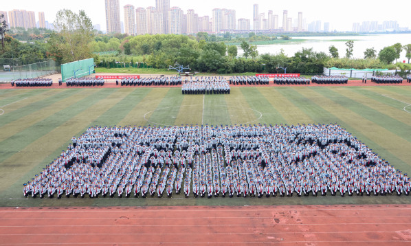 湖北日报讯(记者韩晓玲、通讯员孙欢欢、苏古润、李宇曦)9月25日,武汉工商学院举行2023级新生开学典礼暨军训成果汇报大会。1250名新生组成花样方阵,献礼国庆。