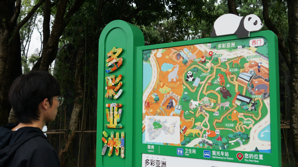 “我们希望能够向市民展现一个五彩斑斓、活灵活现、童趣可爱的动物园。”徐郑冰介绍,动物园有六大分区,每个分区有不同的二级分区、动物展馆以及商业网点的命名牌。团队在创作这些“字绘”命名牌时,会根据不同区域动物的特点,找出动物活泼、可爱、俏皮、有趣的角度进行插画创作,整体看起来童心童趣又不过分幼稚,颜色丰富,展现动物世界的缤纷多彩。