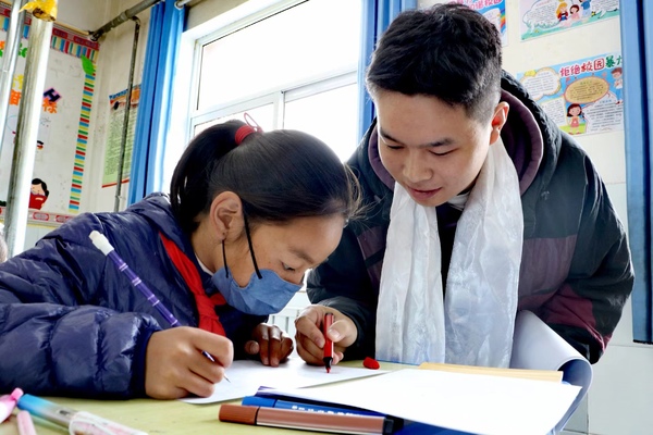 西科小学四年级学生南卡吉桑在课上听得津津有味,十分专注,他说:“谢谢哥哥姐姐们的用心教学,这些课程真的太有意思、太好玩了,想不到还能通过画画的形式来了解我们祖国的历史文化,我要把我的绘画作品好好收藏起来,以后我也会经常用画画的形式来表达我的想法和感受,也希望哥哥姐姐们下次还能再来。”(王昕语 丁真)
