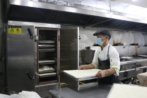 图为食堂大叔张正平认真工作 摄影:胡毅