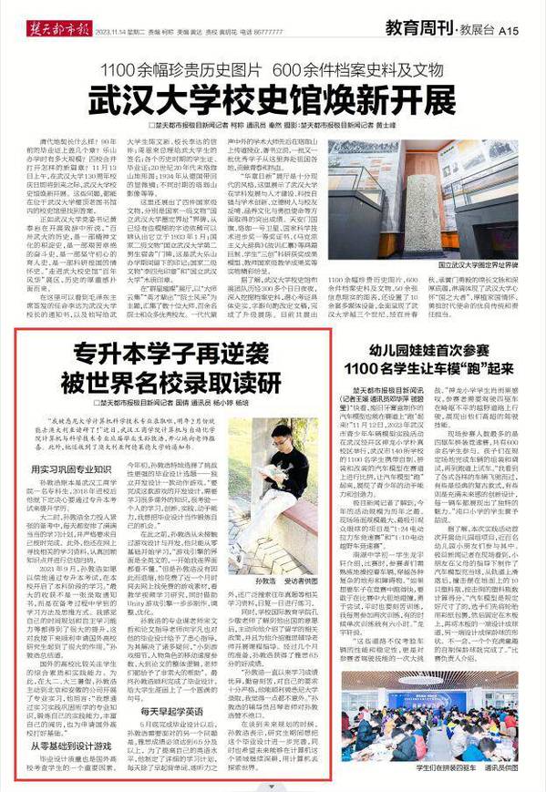 2021年9月,孙敦浩如愿以偿地通过专升本考试,在本校开启了本科阶段的学习。“最大的收获不是一张录取通知书,而是在备考过程中学到的学习方法及思维方式。我感觉自己的时间规划和自主学习能力等都得到了很大的提升,这对我接下来顺利申请国外高校研究生起到了很大的作用。”孙敦浩总结道。