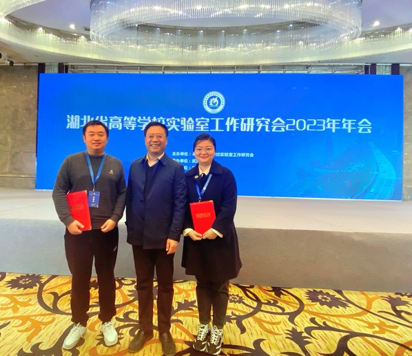 图为环境与生物工程学院实验教学中心获评“第十一届湖北省高校实验室工作研究会先进单位”颁奖现场