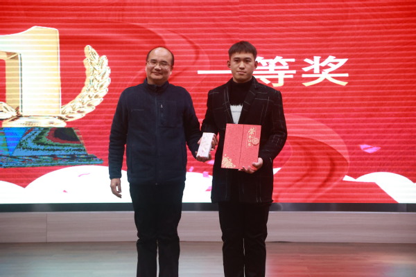 图为周本爽副部长为一等奖获得者颁奖 摄影:黄秋婷