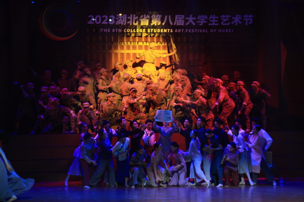 在开幕式现场,来自湖北省各大高校和专业院团的28件舞蹈作品同台展演。学校舞蹈表演系的学生们深情演绎了中国革命历史上一群顽强不屈、不怕牺牲的爱国青年、革命英雄,矢志不渝投身伟大红色革命事业的经典画面,带领观众走进了这段伟大的革命历史,接受了一场心灵的洗礼和深刻的党史学习教育。