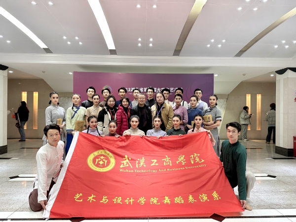 新闻中心讯(记者 杨培 杨小婷)“请党放心,强国有我,请党放心,强国有我!”伴随着激昂的曲调,身着长衫、旗袍等服装的舞蹈演员们在舞台上高举右手,铿锵有力地喊出青春誓词。12月6日晚,湖北省第八届大学生艺术节开幕式上,武汉工商学院舞蹈表演专业学生表演的舞蹈节目《新青年》在开幕式上惊艳亮相,表演震撼人心,现场掌声雷动。湖北省教育厅厅长周静出席开幕式并致辞。学校副校长左宗文,艺术与设计学院副院长何轩,校团委书记邱玉添等一行来到现场慰问学校参演学生。