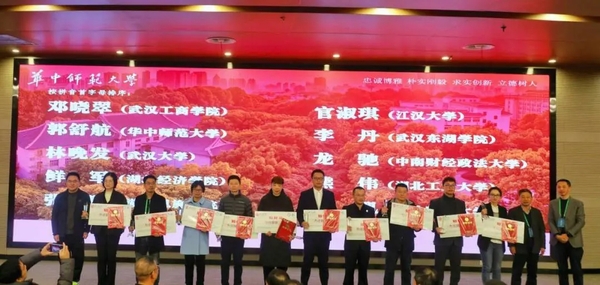 图为“2023年度湖北省高校经济管理实验教学优秀教师”颁奖现场(左四为邓晓翠副教授)