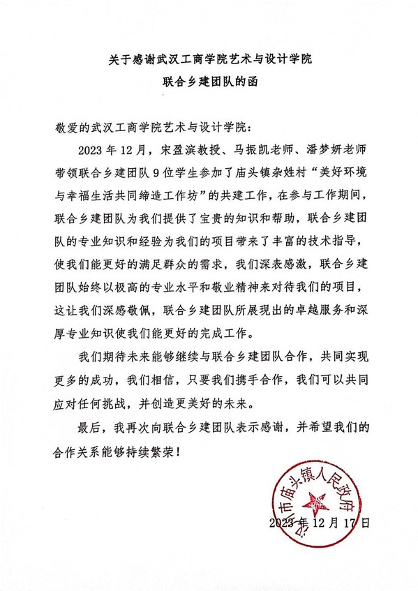 据了解,学校环境设计专业作为湖北省一流本科专业建设点,始终坚持以专业服务地方经济社会发展,成立了“生态景观设计研究中心”工作室,专业师生多次参与湖北省“乡村微环境改造”共同缔造试点村活动, 服务过近20处乡镇规划设计工作。