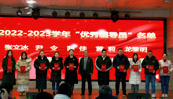 党群工作部副部长王曼宣读了《关于表彰2022-2023学年度“优秀辅导员”的决定》,授予张文冰、尹令、薛佳、黄莉等十名辅导员“优秀辅导员”称号。