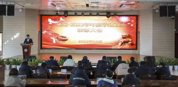 新闻中心讯(记者 伍思婷 叶天舜)12月25日下午,武汉工商学院2022-2023学年度学生工作表彰大会在学校体育馆0402报告厅隆重召开。武汉工商学院副校长桂裕清、左宗文,校长助理亓小林、刘春等校领导出席会议,学工部、党群工作部、校团委等职能部门负责人,各学院党总支书记(副书记)、辅导员和学生代表参会。大会由学生工作部部长陈义文主持。
