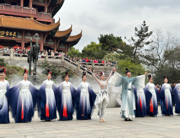 舞蹈表演系老师姚辰介绍道,《鹤舞》取材于明朝杨基《招鹤词为薛复善赋》,“仙人招鹤,黄鹤归来”,与黄鹤归来铜雕相得益彰。同时该节目也是艺术与设计学院与黄鹤楼公园管理处合作开展的一项横向科研项目,目前也将要开启第三年的合作,“通过参与社会实践,参演的学生不仅提升了专业技能,开阔了视野,学习了悠久的中华优秀传统文化,更是收获了丰富的社会工作经验,这些都是传统的校内教学难以企及的。”