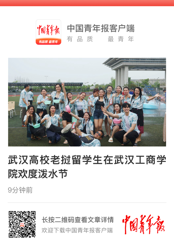 4月13日上午,武汉工商学院操场热闹非凡、水花飞溅,充满着欢声笑语,来自武汉大学、华中师范大学、华中科技大学、中国地质大学(武汉)、湖北大学等学校的75名老挝留学生在此兴高采烈地庆祝传统节日——泼水节。