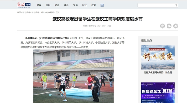 新闻中心讯(记者 陈雯茜 涂媛媛 杨小婷)4月13日上午,武汉工商学院操场热闹非凡、水花飞溅,充满着欢声笑语,来自武汉大学、华中师范大学、华中科技大学、中国地质大学、湖北大学等学校的75名老挝留学生在此兴高采烈地庆祝传统节日——泼水节。