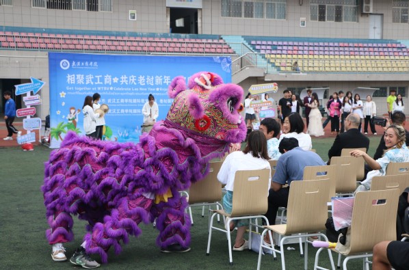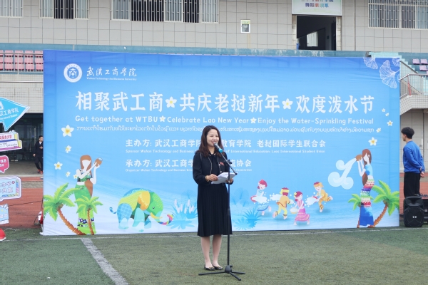 中老泰国际商务服务公司董事长范茂胜,德国比勒菲尔德中型企业应用技术大学驻华教育中心首席代表张欣,武汉中因教育发展研究中心总经理倪章龙,老挝国际学生联合会会长金利,武汉工商学院国际教育学院院长孔少敏和学院百余名师生一起参与了庆祝活动。武汉工商学院龙狮队还带来了精彩的龙狮表演,为泼水节增添了更多喜庆的氛围。