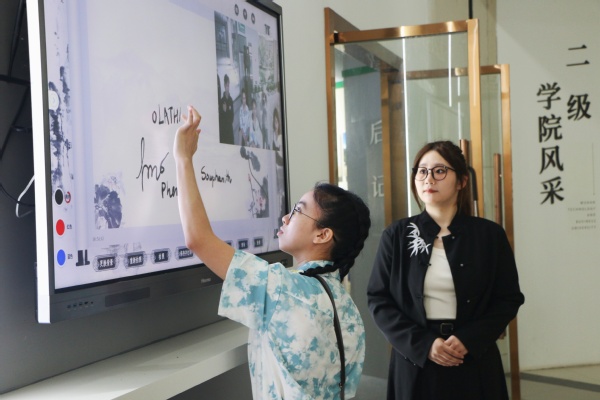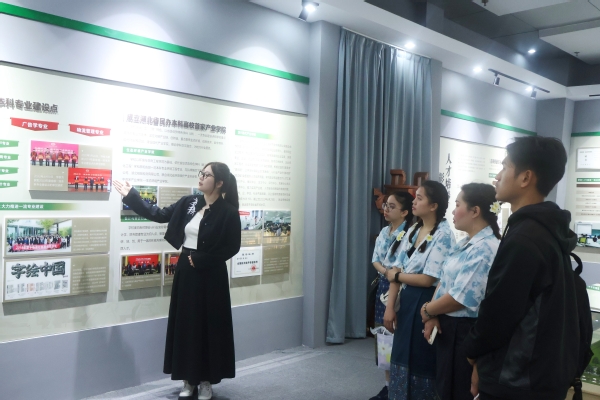 在参加泼水节活动前,与会嘉宾和老挝留学生还参观了武汉工商学院校史馆。