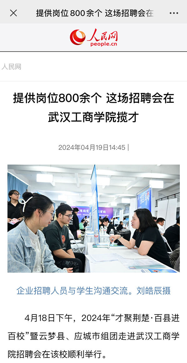云梦县公共就业和人才服务中心副主任杨世鹏说:“此次招聘会为企业和高校毕业生之间提供了一个面对面、零距离的交流平台,有效促进了就业信息的流通和匹配。”他希望,未来能与武汉工商学院加强合作与交流,吸引更多优秀的人才到云梦县建功立业。