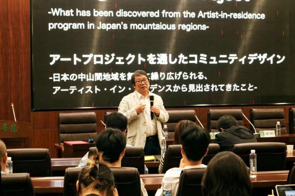 讲座中,岩田祐子女士对日本社会发展的挑战和社区建设的三个阶段进行了概述,并详细介绍了创建原泉艺术项目的过程。她表示,自己每年都会邀请全球各地的艺术家到原泉乡进行艺术创作和交流,并在老旧工业遗址中租借空间举办系列活动,如艺术展览、工作坊和社区聚会等,这些艺术设计实践项目为古老山区的复兴带来了积极效应,也为国际文化交流搭建了平台。她指出,该项目的成功开展不仅促进了艺术的创新发展,也使得艺术设计成为了架起社会、文化与自然之间的桥梁,推动了当地的区域经济文化发展,为艺术家的创作提供了可行性场所。