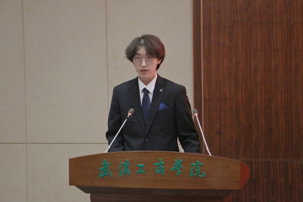 获“经典在我心”演讲比赛一等奖的文法学院2023级法学专业学生徐颢哲作为获奖学生代表发言。“腹有诗书气自华,最是书香能致远。”他呼吁大家要珍视书籍的独特价值,博览群书,养成良好的阅读习惯,享受静心阅读带来的快乐。