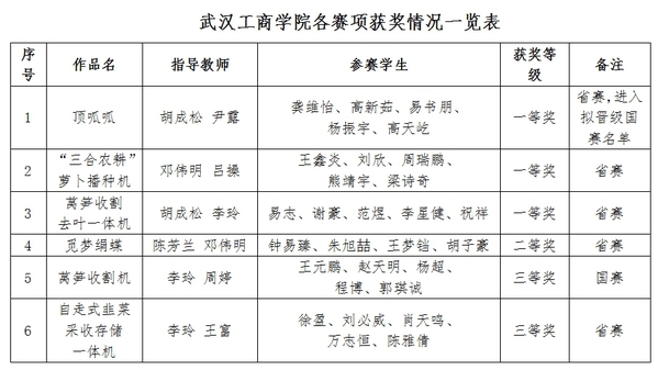 经过精心培训、选拔,武汉工商学院共派出了6支队伍、40余名师生参赛,与来自武汉大学、华中科技大学等名校学生同台竞技,竞争非常激烈。面对强劲对手,武工商学子沉着冷静,充满自信地在现场演示设计的作品模型,并回答评委们的提问。最终,《顶呱呱》《“三合农耕”萝卜播种机》《莴笋收割去叶一体机》3件作品凭借出色的创新设计、优良的工作性能喜获省赛一等奖。