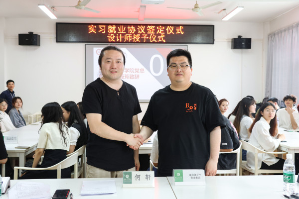 新闻中心讯(特约记者 丁真 通讯员 程梓昊 王昕语)4月28日下午,武汉工商学院艺术与设计学院实习就业协议签订仪式暨“特邀设计师”聘书颁发仪式在学校艺术与设计学院401会议室举行。武汉工商学院艺术与设计学院党总支书记罗筱芳、副院长何轩等,同来自武汉起舞清影文化传媒有限公司、武汉颜趣网络科技有限公司、湖北孺子牛鞋业集团有限公司和武汉宝三网络科技有限公司等多家企业负责人一起参加仪式。