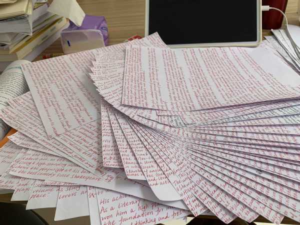 去年9月份,为了提升“冲刺”阶段的复习效率,她开始整理自己的考研笔记,用醒目的红笔将所有复习材料、考研真题中的重点、难点内容写在一张张A4纸上。两个多月的时间,她手写了100多页密密麻麻的英语考研笔记。